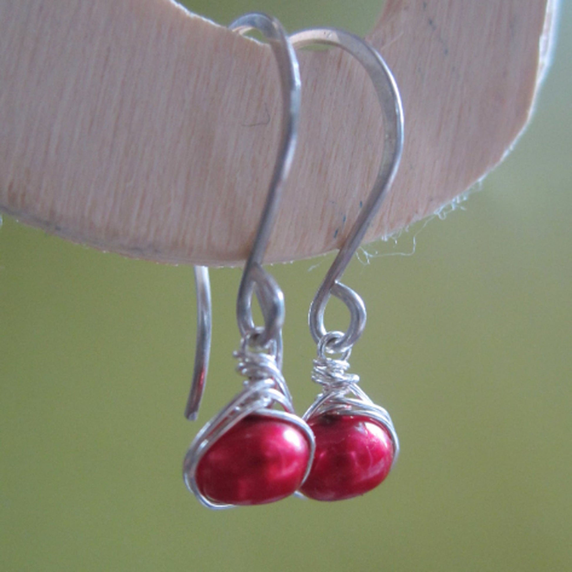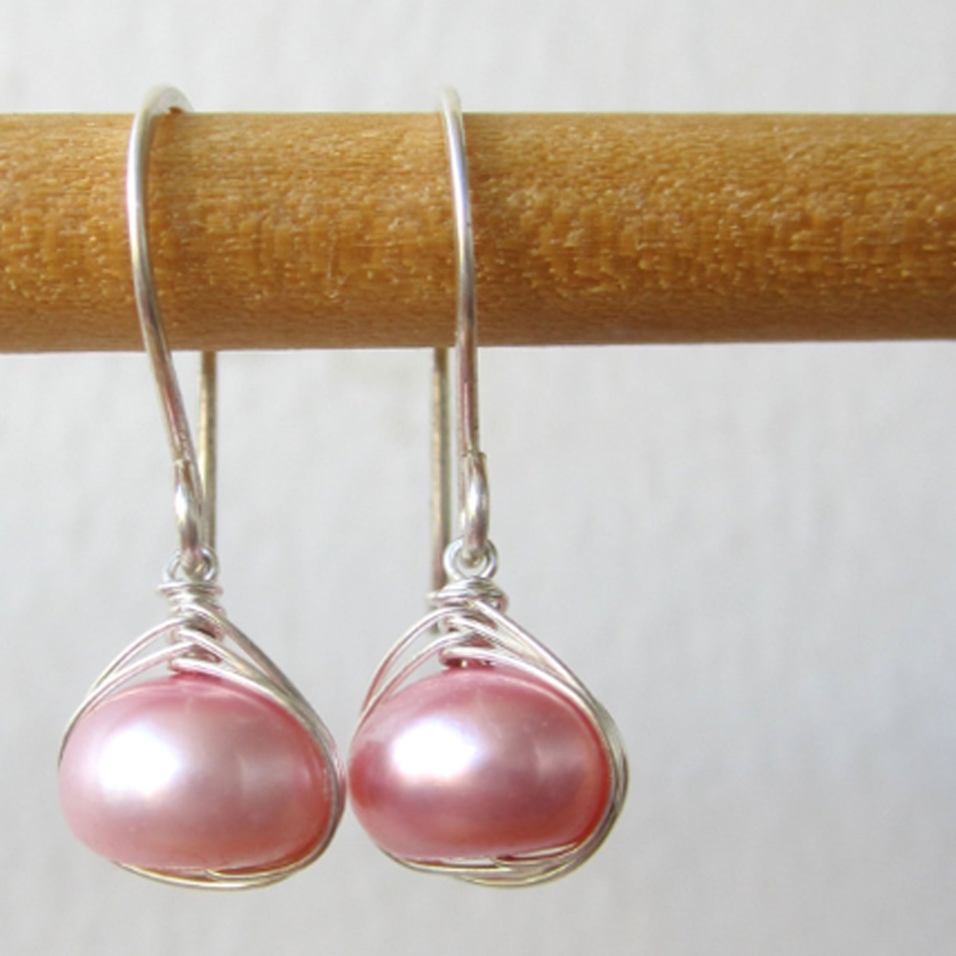 This dazzling style of earrings feature a woven wire frame for a pair of deliciously colored freshwater pearl buttons. They gracefully sway from my uniquely handmade earwires. They are quite dainty in size and a perfect accent to your holiday wardrobe.