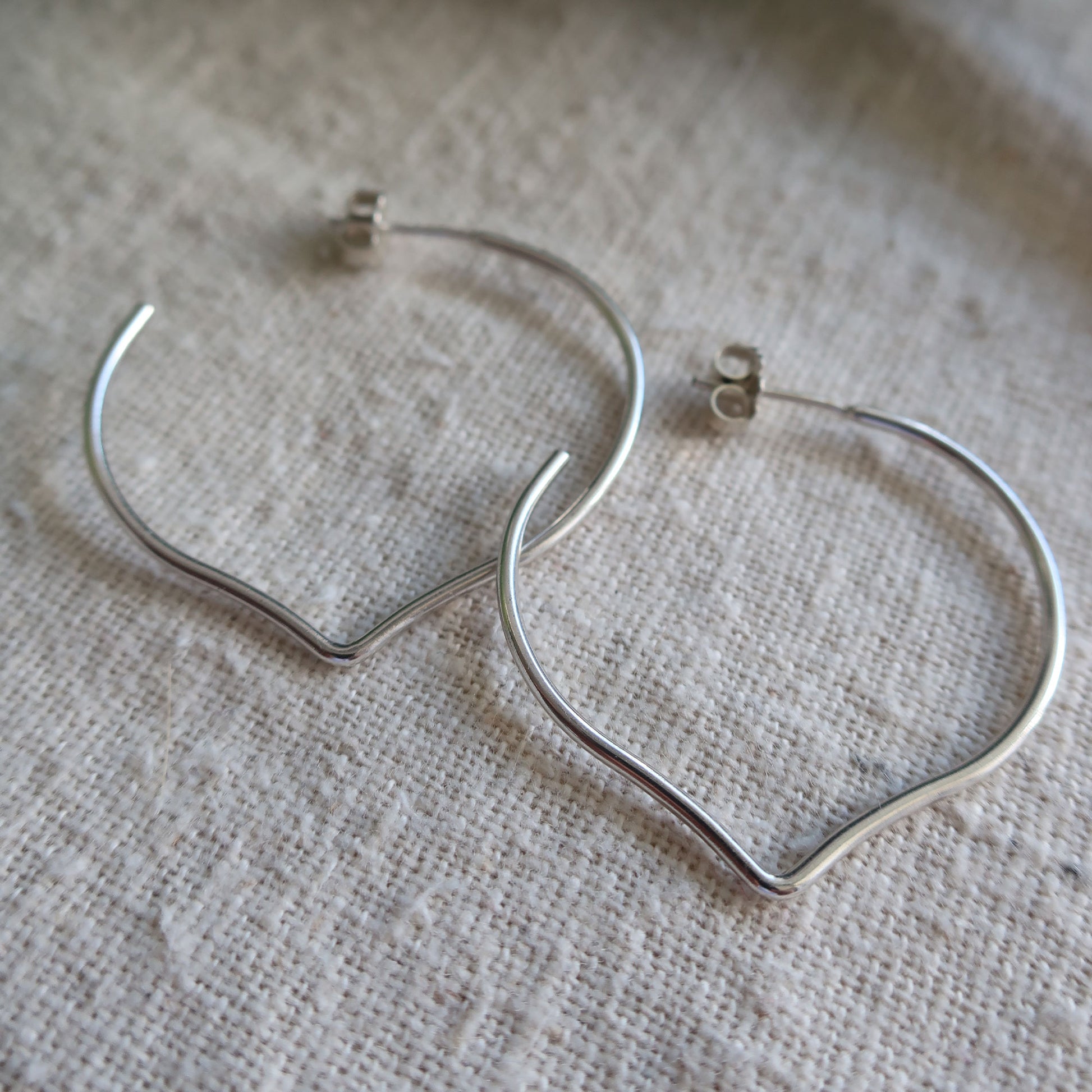 These "Lotus Hoops" are handforged into the lotus shape with Sterling silver wire. and secured in place with earnuts.
