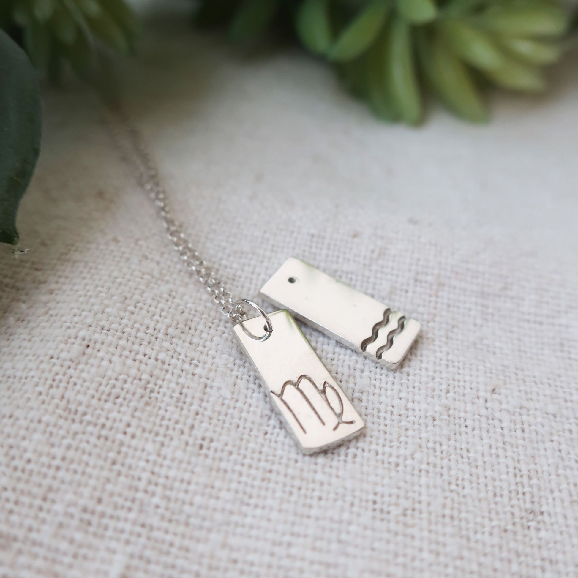 A mini sterling silver tag features your astrological sign gracefully hung from a dainty cable chain. Just choose your special sign.