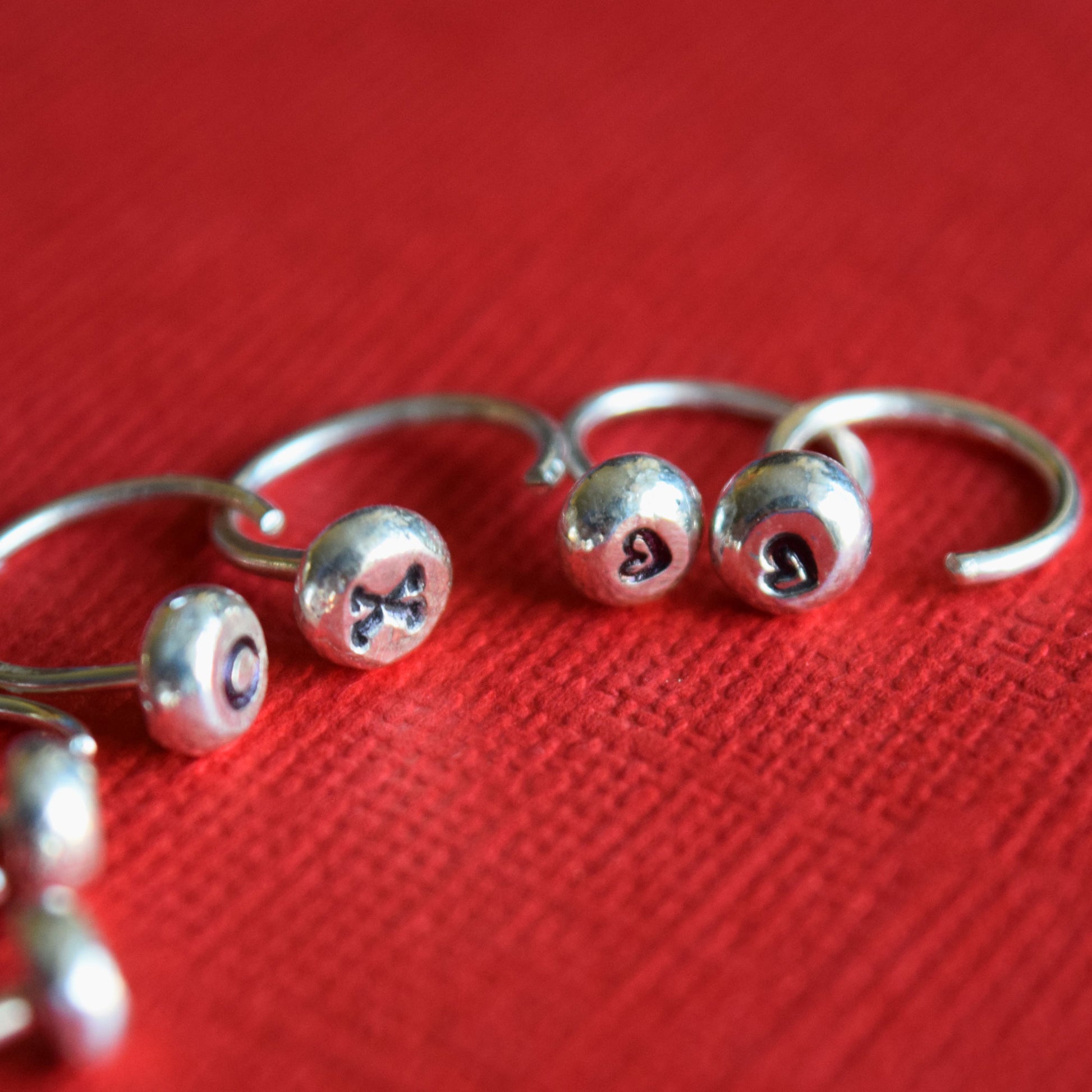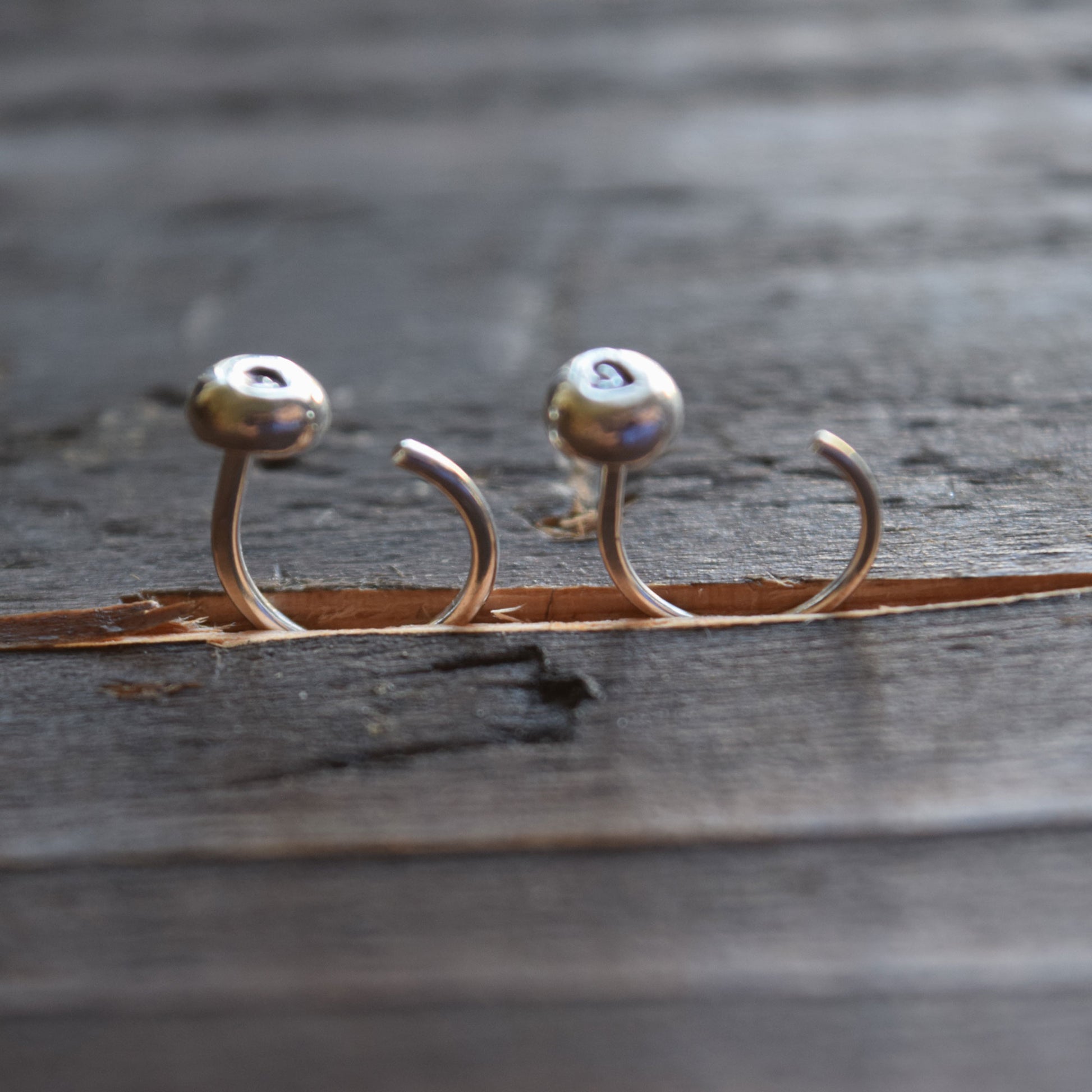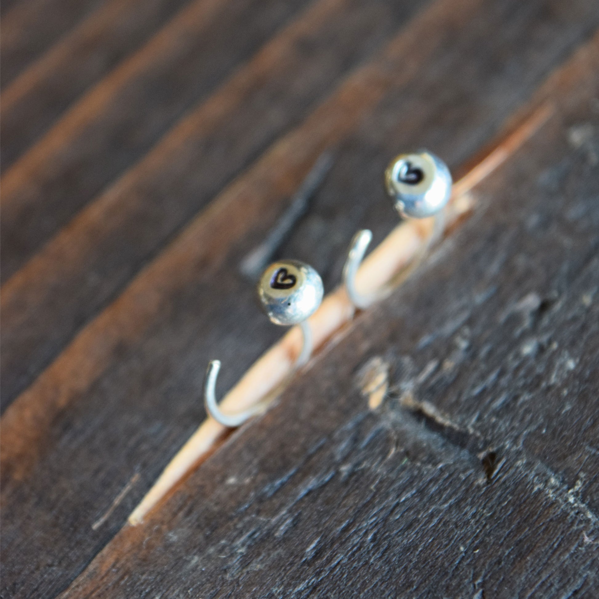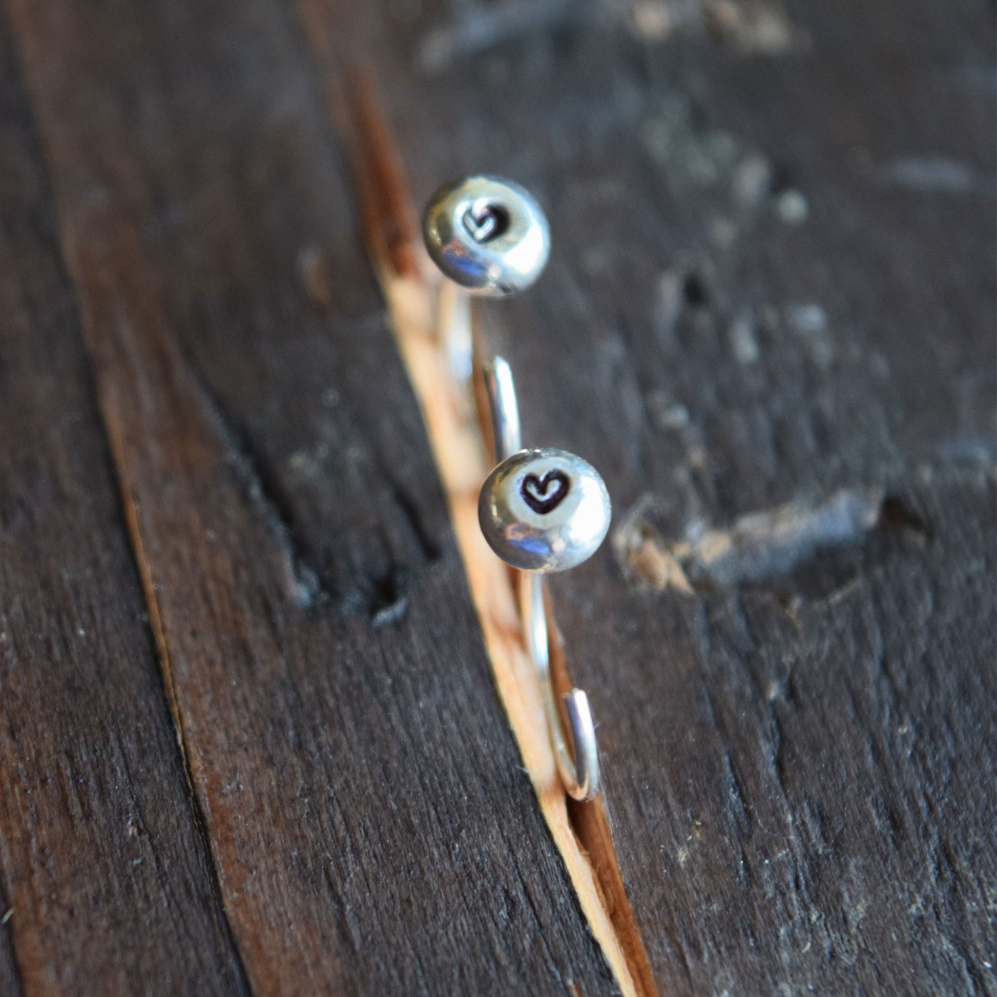 These earrings are made with recycled sterling silver, handstamped with a tiny heart, and accented and polished to a super bright sheen. They're a perfect size for an upper lobe piercing, but can be used in a standard lobe piercing.