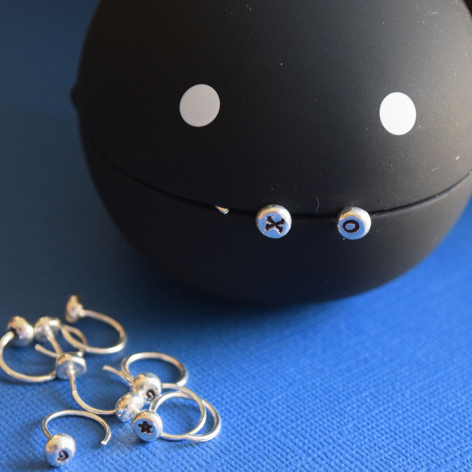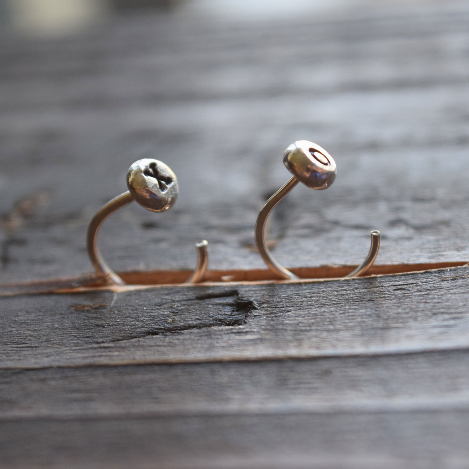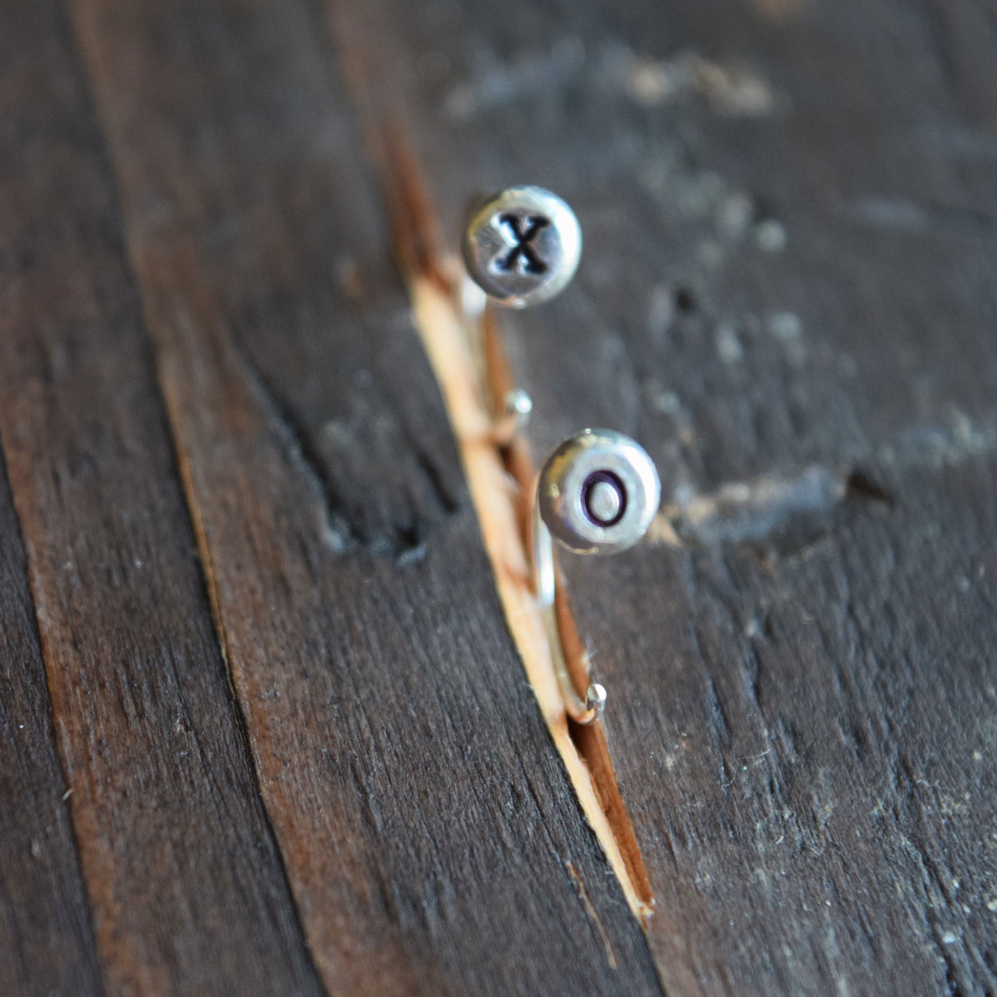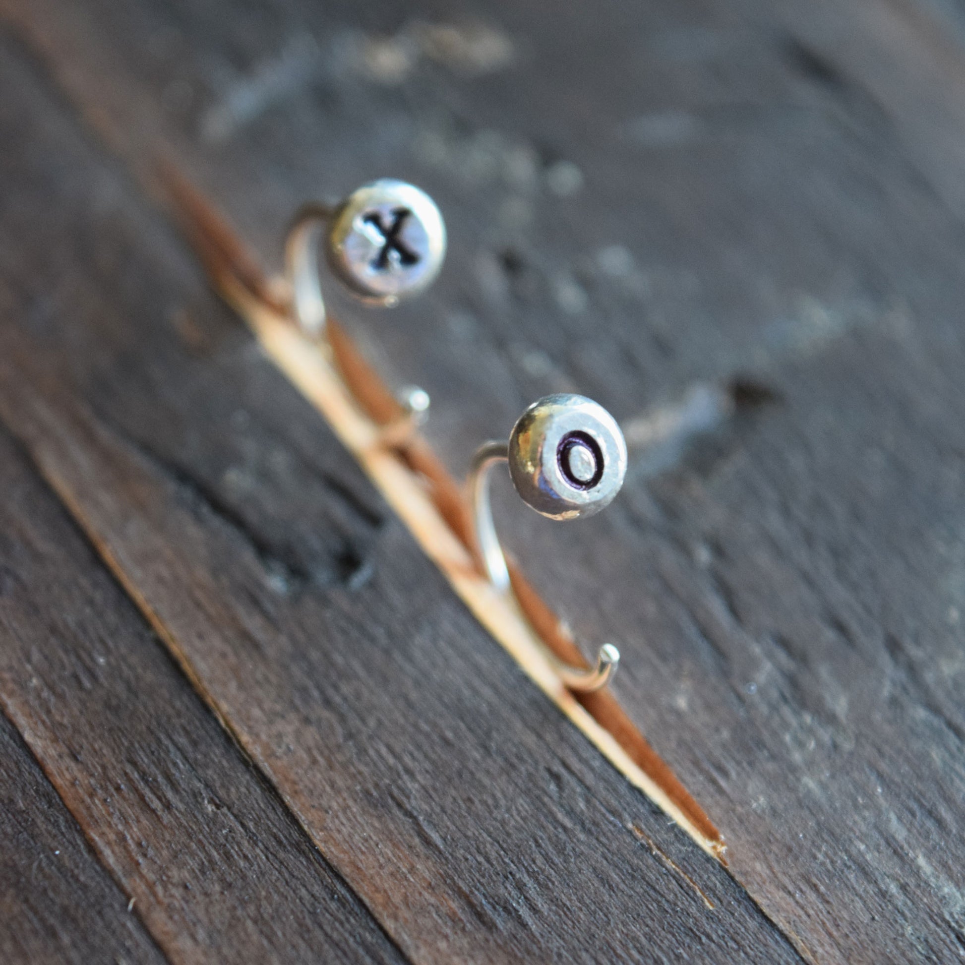 These earrings are made with recycled sterling silver, handstamped with a tiny "X" on one and a tiny "O" on the other, and accented and polished to a super bright sheen. They're a perfect size for an upper lobe piercing, but can be used in a standard lobe piercing.
